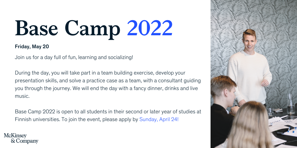 To apply for McKinsey & Company – Base Camp 2022 – click here and sign up by Sunday, April 24