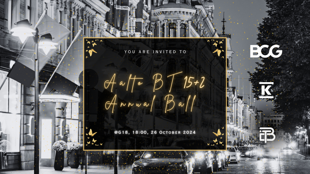 We are thrilled to invite you to celebrate the Aalto BT 15+2 Annual Ball, marking our 17-year journey. This splendid evening will take place on Saturday, the 26th of October 2024, at the historic G18 venue.