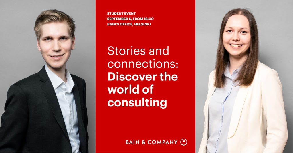 Are you interested in discovering how your skills can make a difference for leading companies in the Nordics? Apply HERE before August 27th by sending a short text explaining your motivation to join. You can also include your CV. If you have any questions, feel free to email Veera Sysinoro at helsinki-recruiting@Bain.com.