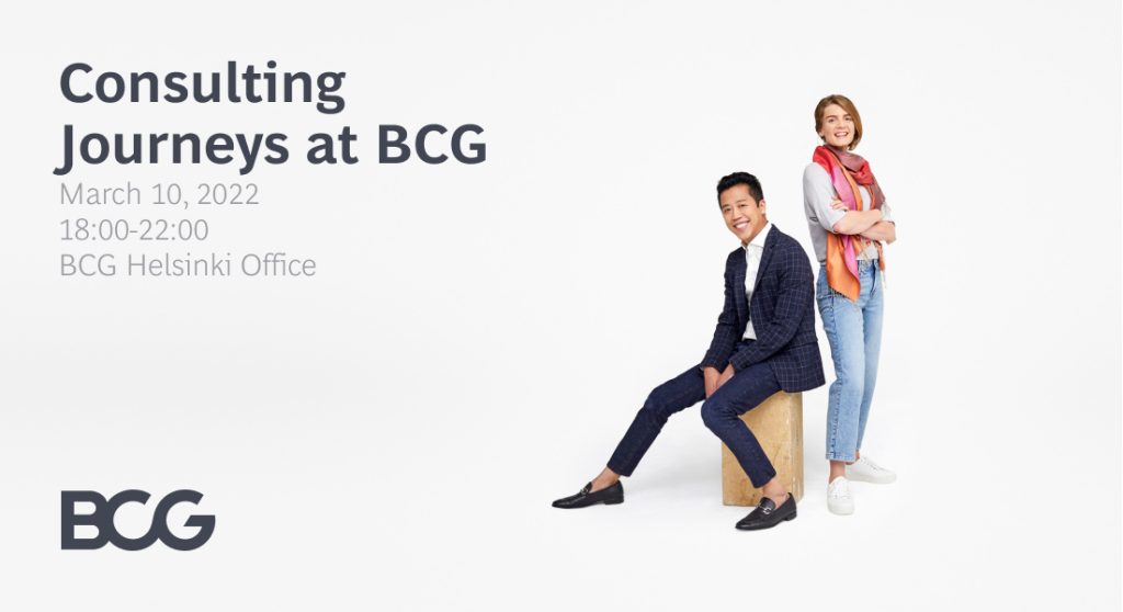 BCG is the leading management consulting company in Finland, and our success creates opportunities for your growth. The event is an excellent opportunity to hear more about who we are in a relaxed setting.