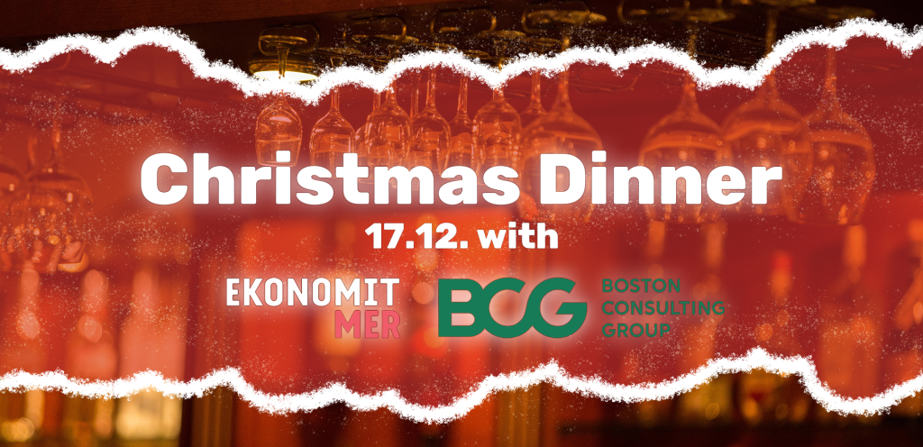Celebrating the holiday season together with us will be corporate partners BCG and Suomen Ekonomit. You will hear short introductions of the companies and get to connect with the representatives one-on-one.