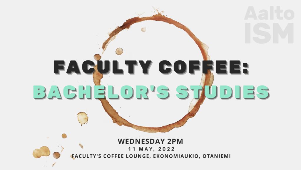 Come join the ISM board, Aalto Faculty, and other students for a coffee. We want to get to know you, hear your input, and give you the chance to talk with the faculty directly and build Aalto together! See you on Wednesday the 11th! If you have trouble finding the room, you can message us in the board, or ask in ISM Channel.