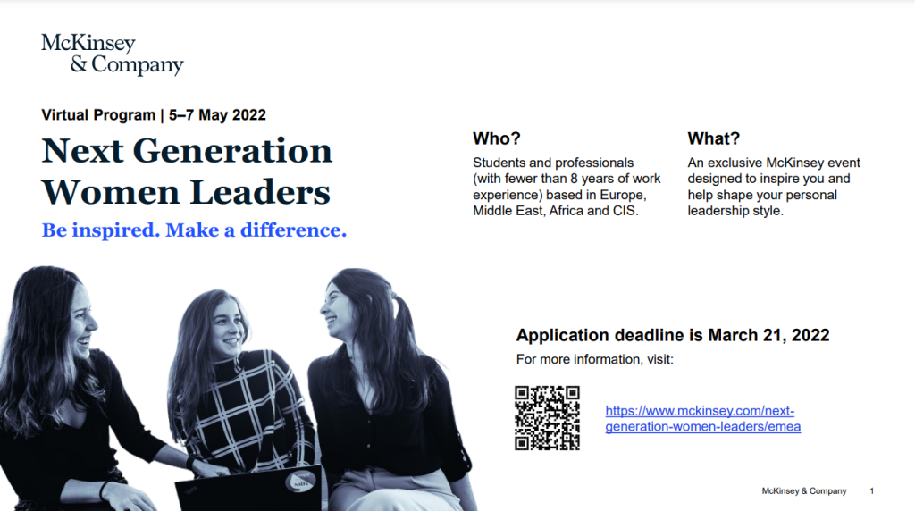 McKinsey & Company is providing the opportunity for you to join the Next Generation Women Leaders program!
