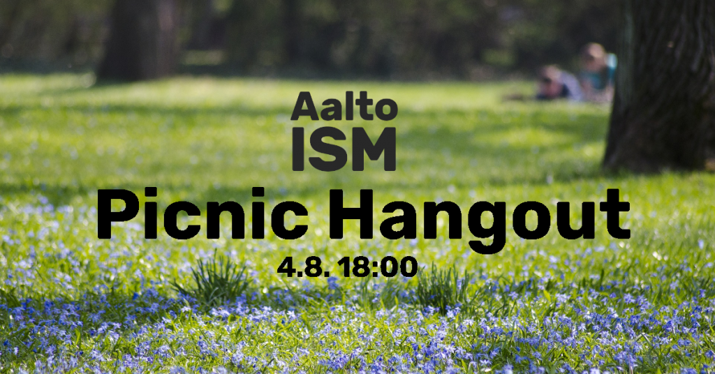 We have heard your wishes for an event! Aalto ISM welcomes all new and old ISM students to a casual hangout outdoors on Wednesday 4.8. at 18:00 onwards in Vanha Kirkkopuisto. The picnic is a great place to network with other ISM people, meet new faces, and connect with some of our alumni as well! ISM will provide some snacks and drinks, but you may also want to take your own and BYOB (bring your own blanket).